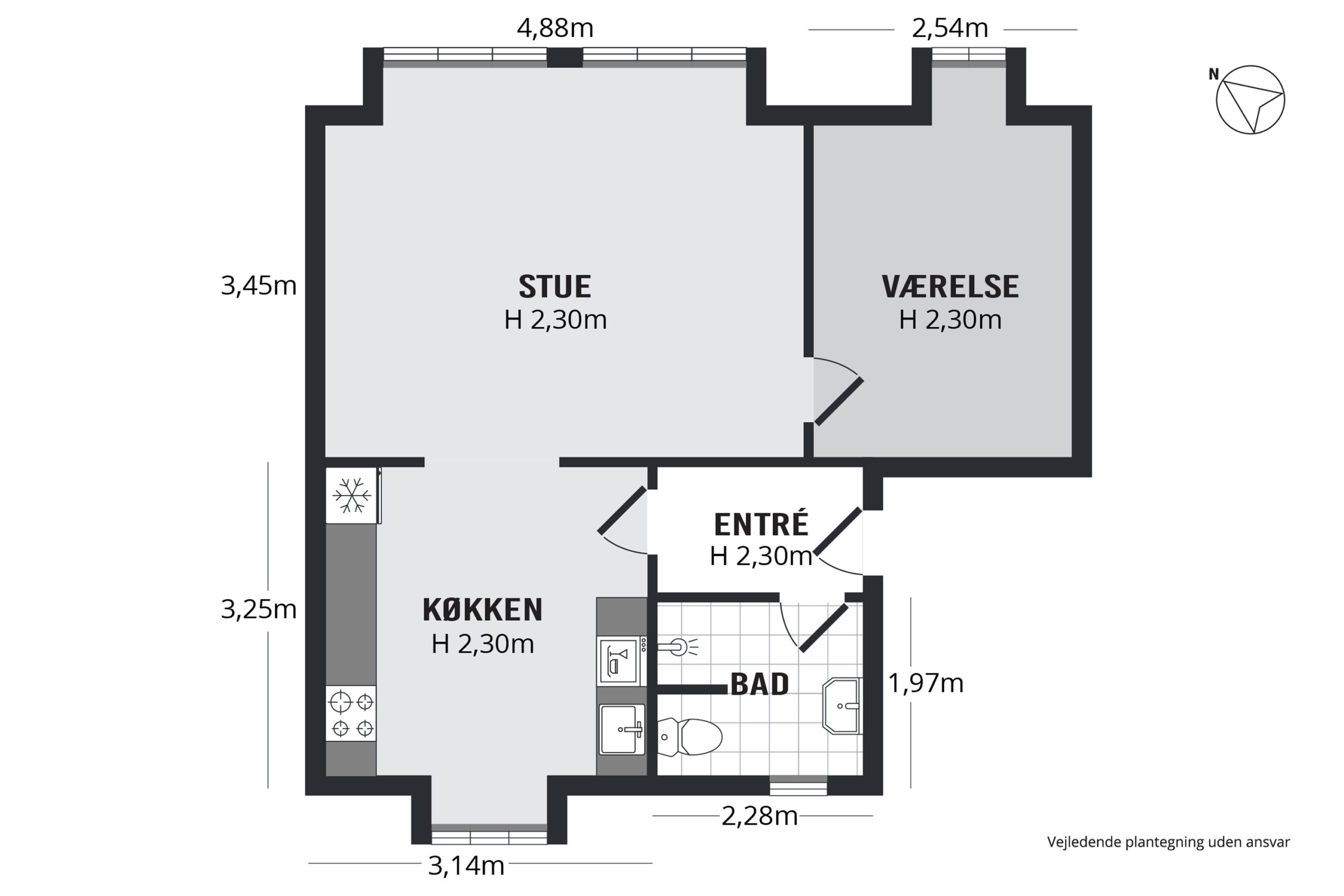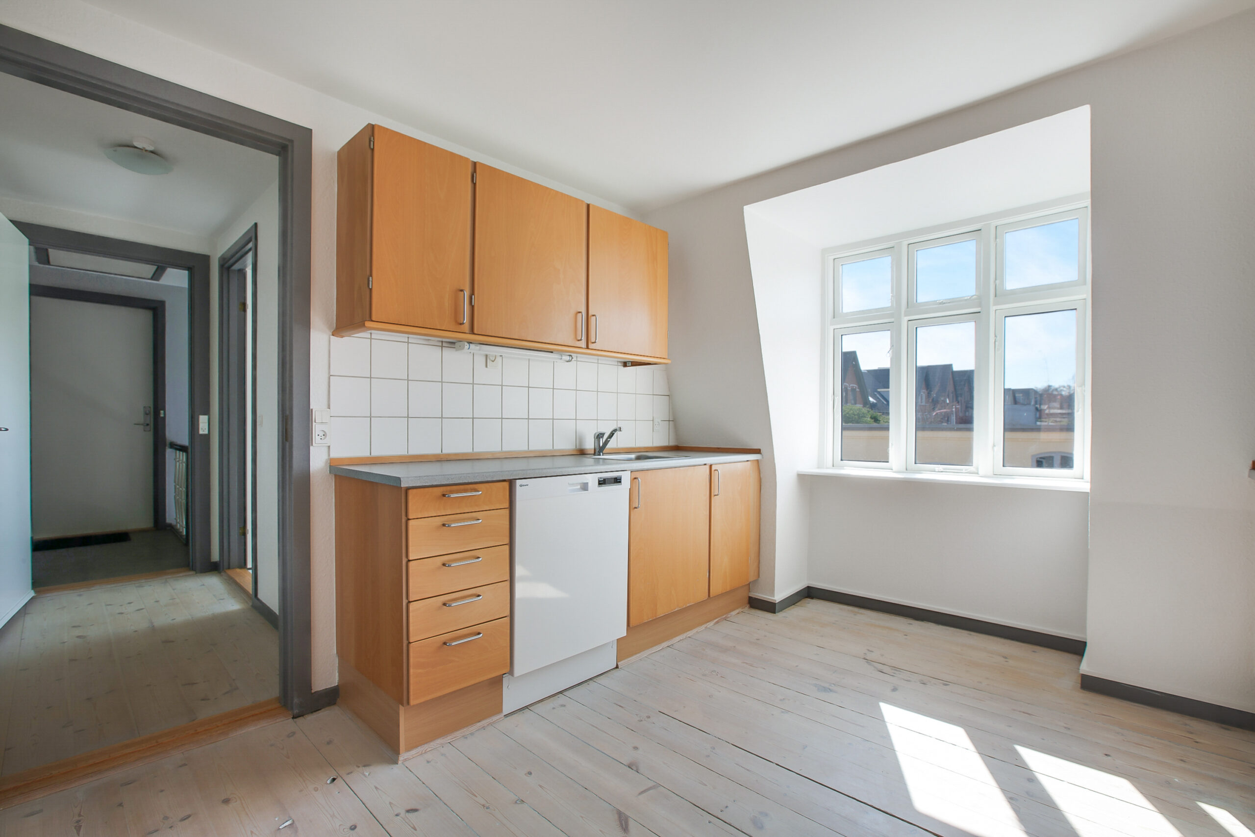 Pæn lejlighed i Centrum indeholdende dejligt lyst køkken, toilet med brus, stue og værelse.