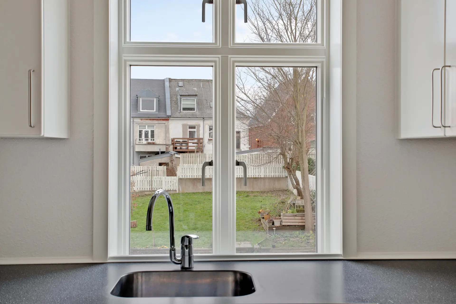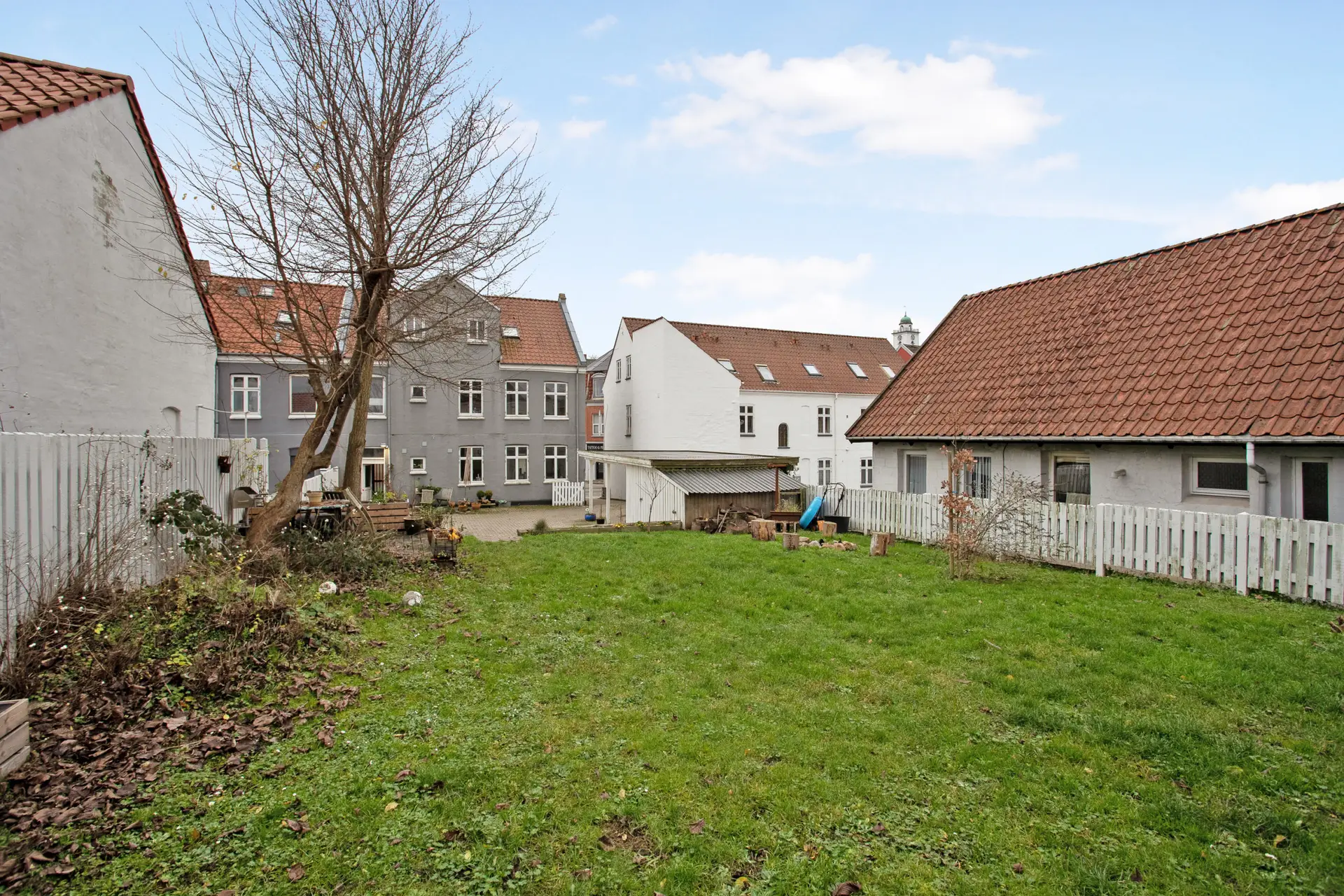 Til lejligheden hører der skur til opmagasinering og fælles have.