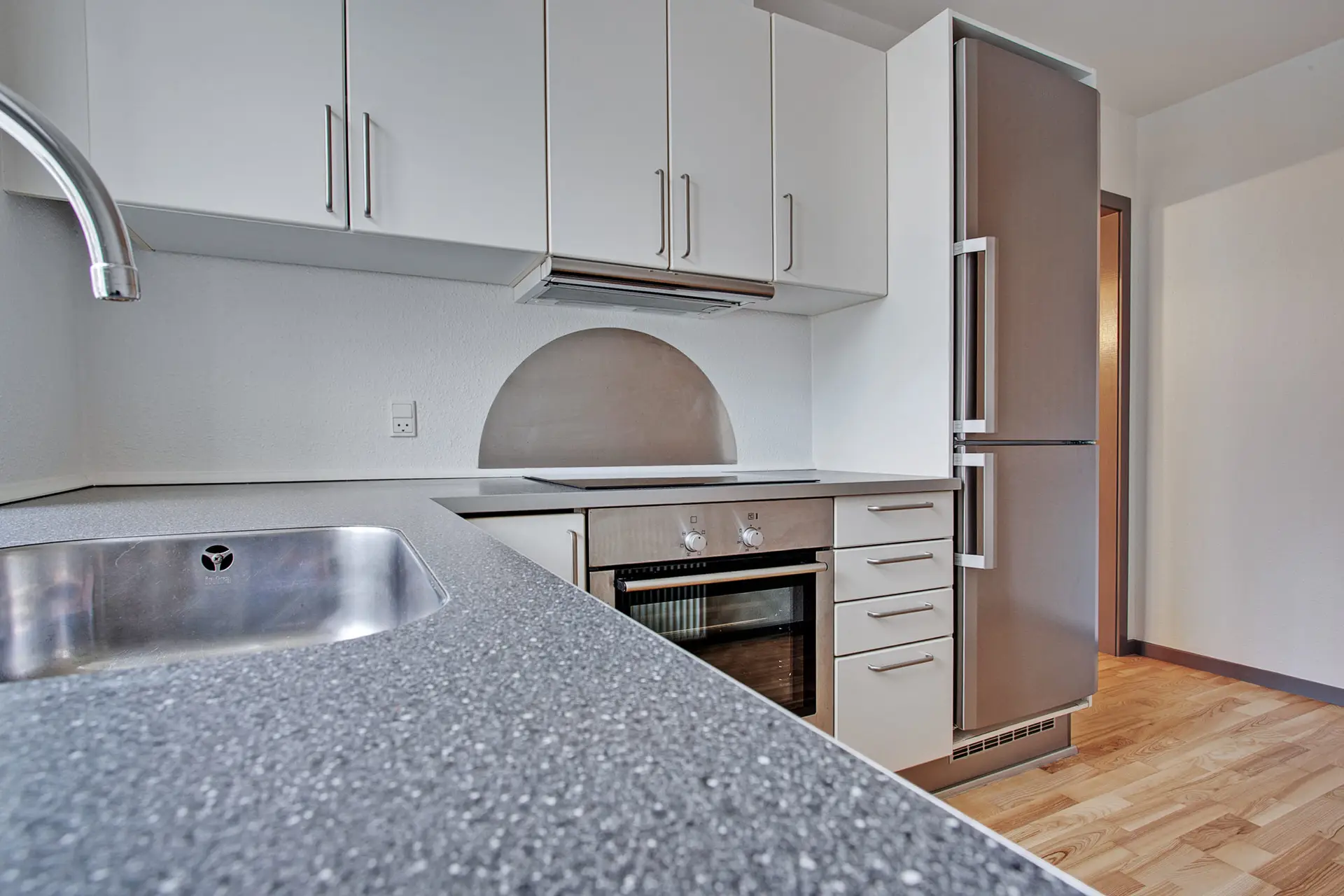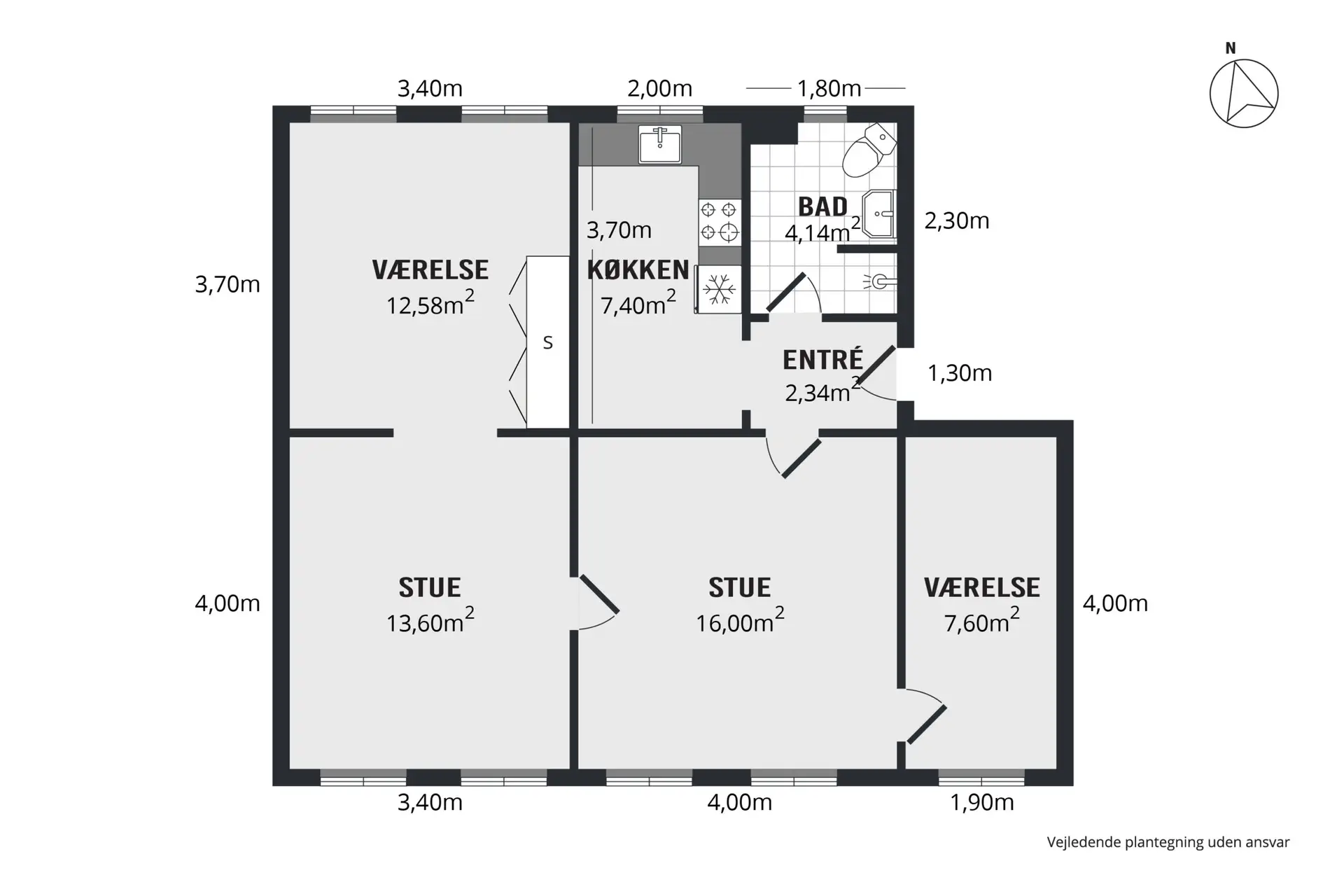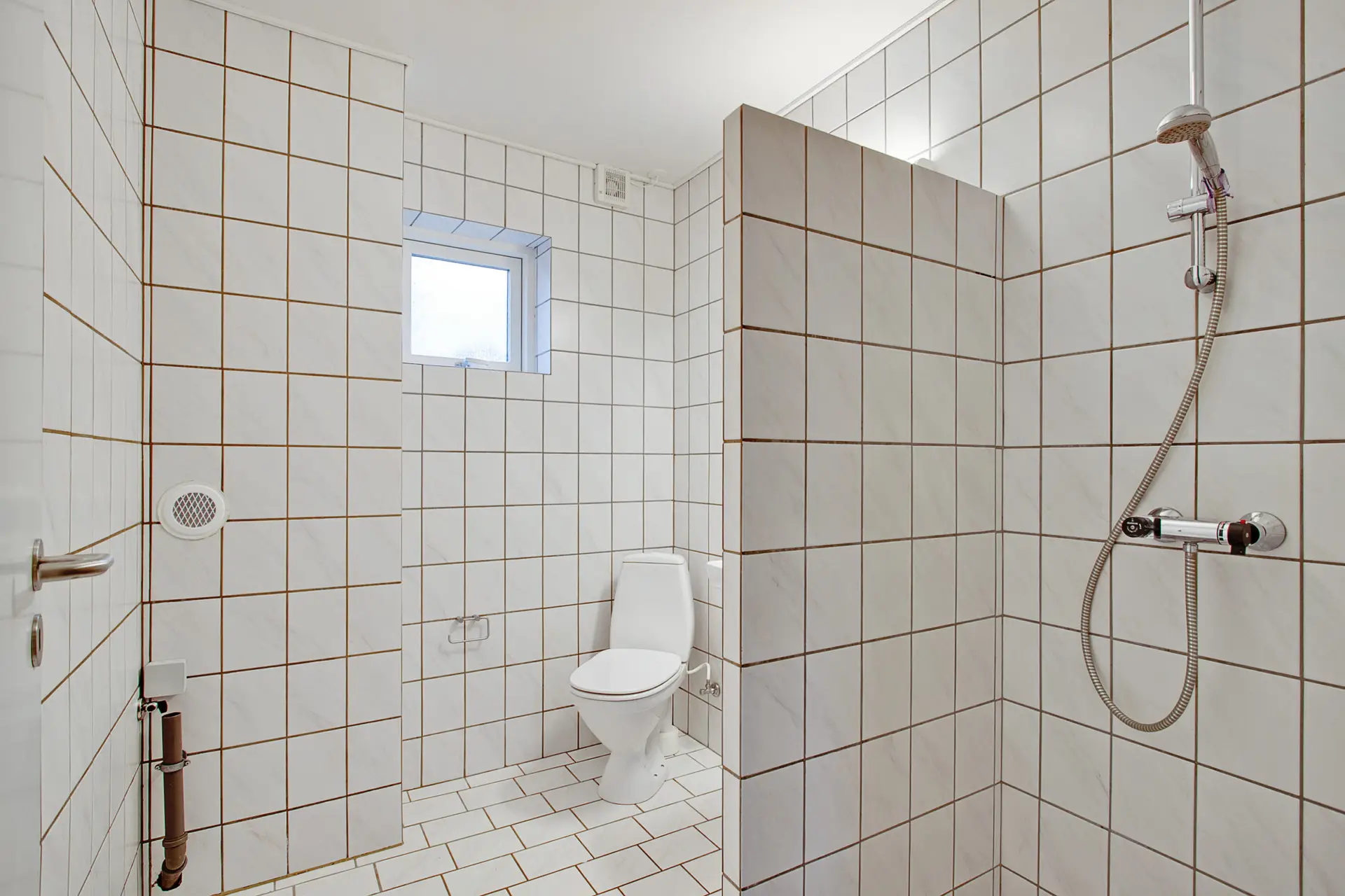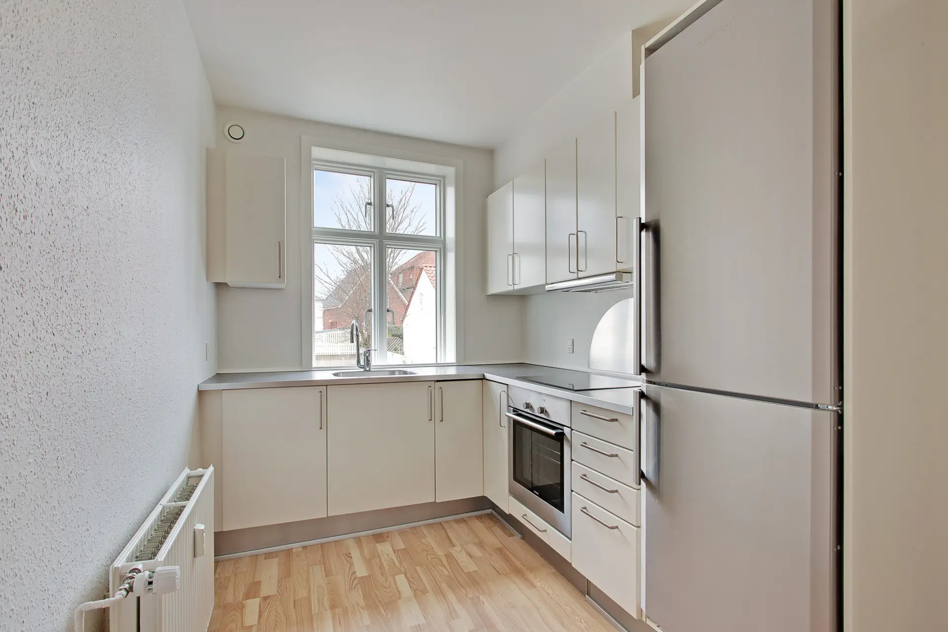Dejlig lys 4-værelses lejlighed med stort badeværelse med plads til vaskemaskine og tørretumbler, soveværelse med skabe og lyst køkken.